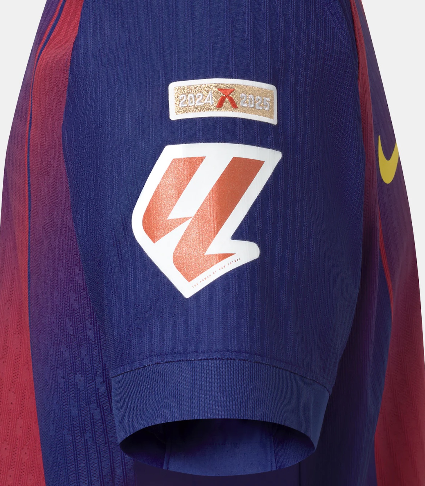 🏆 Na prawym rękawie znajdziesz plakietkę La Liga oraz specjalną naszywkę Mistrzowie La Liga 2024/25 – które podkreślają dominację Dumy Katalonii w hiszpańskich rozgrywkach.
