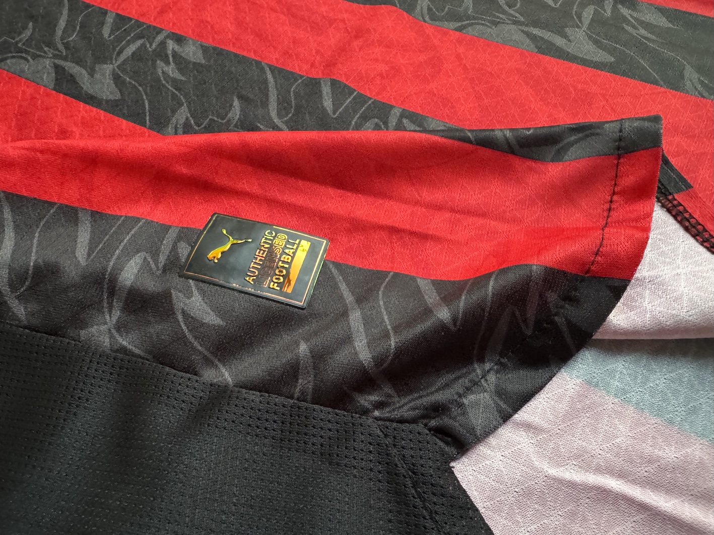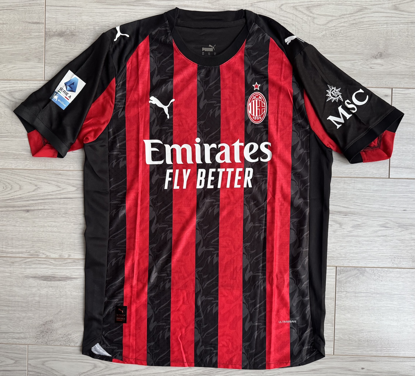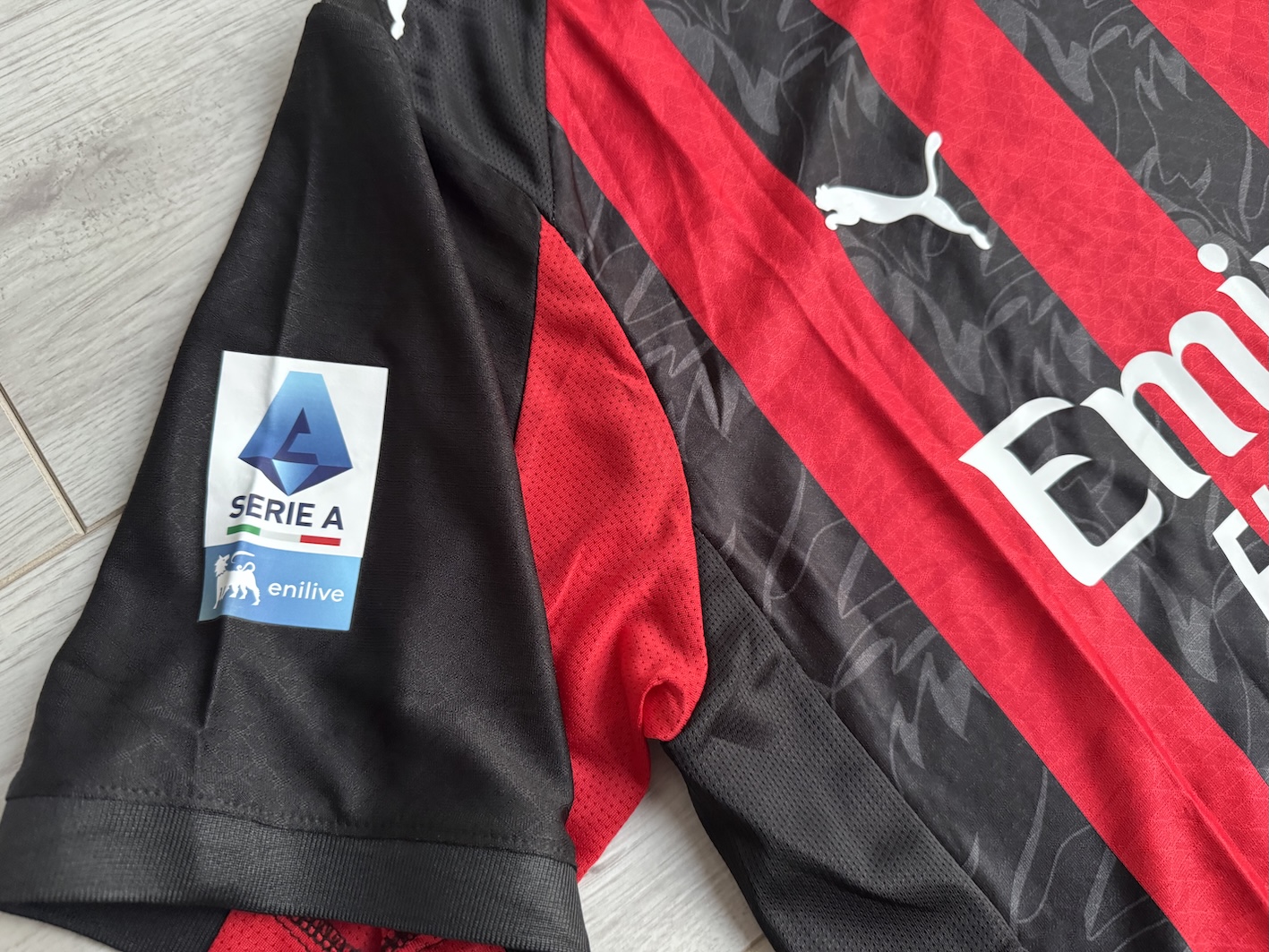 Koszulka meczowa AC Milan z sezonu 2025/26 to połączenie tradycji i nowoczesności – klasyczne czerwono-czarne pasy 🔴⚫️ w nowym, dynamicznym wydaniu z tonowanym wzorem inspirowanym siłą Rossonerich. To oficjalna wersja meczowa, zaprojektowana dla zawodników występujących w Serie A – wykonana w technologii PUMA ULTRAWEAVE, gwarantującej ekstremalną lekkość, elastyczność i doskonałe dopasowanie do sylwetki. Na froncie koszulki znajduje się herb AC MILAN, logo sponsora Emirates Fly Better, a na rękawie oficjalne naszywki Serie A i MSC. Na plecach widnieje nadruk MODRIĆ 14 w oficjalnej czcionce klubowej na sezon 25/26.