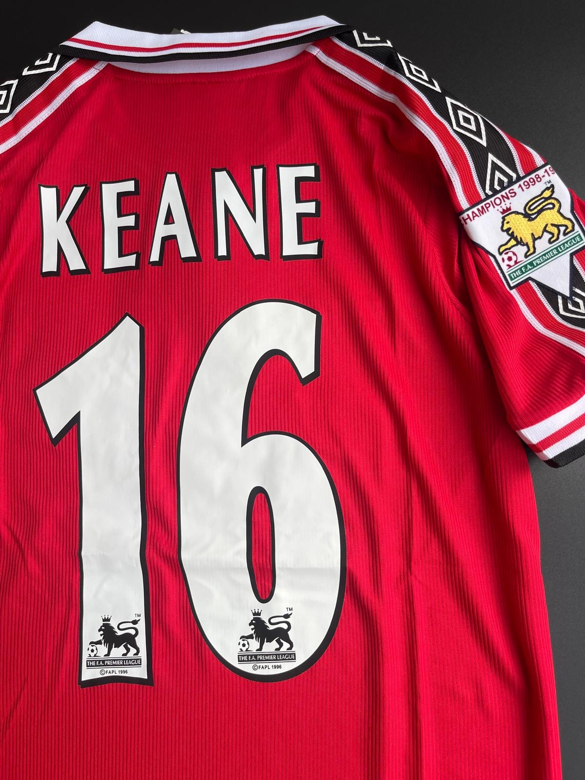 🔹 **NADRUK I NUMER:** Oficjalny styl retro – **KEANE 16**, kapitan, lider i jeden z najlepszych pomocników w historii Manchesteru United.
