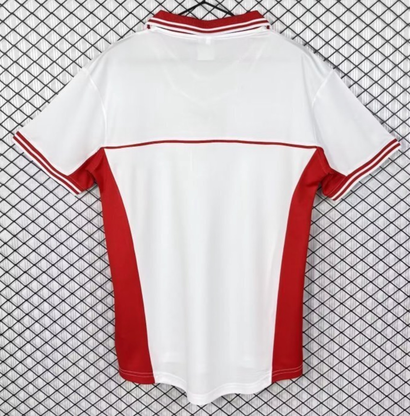 🇵🇱 Kultowa koszulka reprezentacji Polski z roku **1997**, w wersji retro – hołd dla ery, w której barwy Polski reprezentowali tacy zawodnicy jak Juskowiak, Brzęczek, Citko, Kowalczyk czy Nowak. Model wykonany w klasycznej stylistyce Nike lat 90., w biało‑czerwonej kolorystyce, z charakterystycznym kołnierzem i wyszywanym godłem.