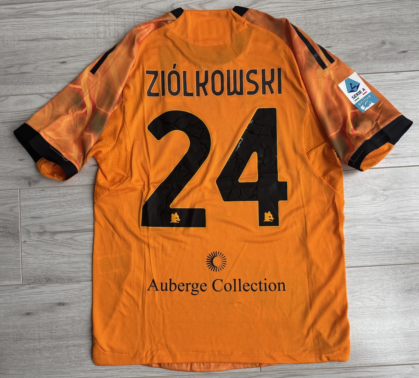 Numer **24** oraz nazwisko **ZIÓLKOWSKI** symbolizują nowe otwarcie i rozwój młodego pokolenia zawodników AS Romy. Wersje meczowe z personalizacją konkretnego piłkarza często zyskują wartość kolekcjonerską, dokumentując wczesny etap kariery w jednym z największych klubów Serie A.