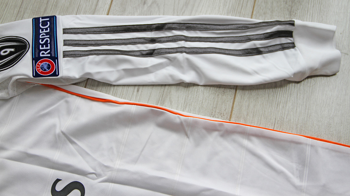 Rękawy: **plakietki Ligi Mistrzów UEFA + Respect**