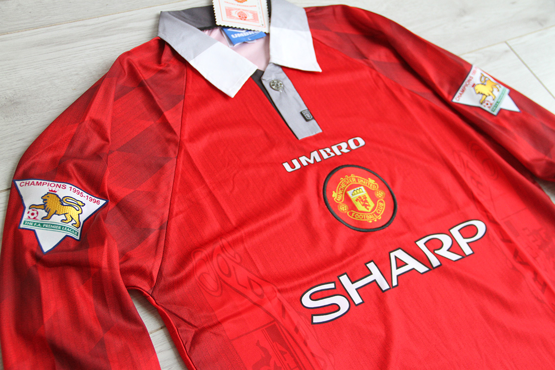 Klasyczna domowa koszulka Manchester United z sezonu 1996/97 w wersji z długim rękawem to jeden z najbardziej ikonicznych modeli w historii Premier League 🔴👑.