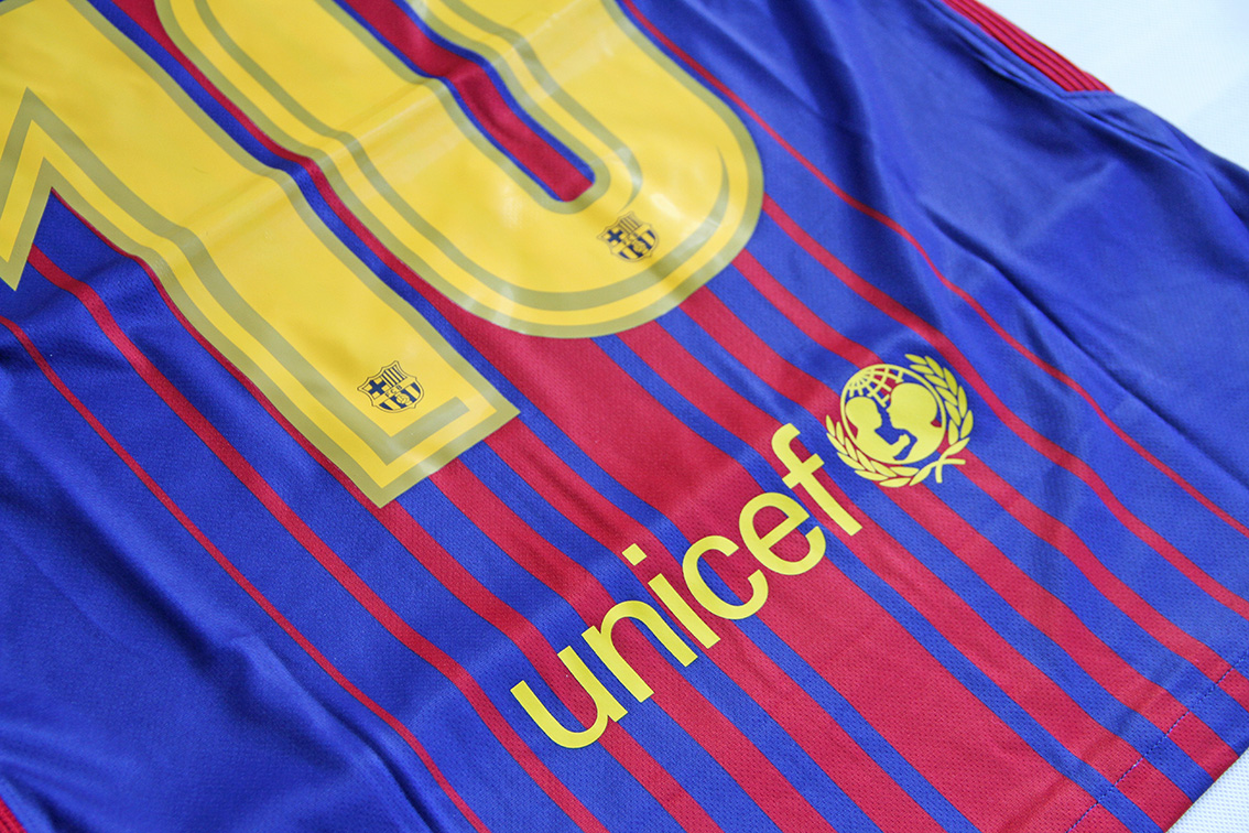 Personalizacja MESSI 10 w pucharowej wersji czcionki, rzadziej spotykanej i szczególnie cenionej przez kolekcjonerów.