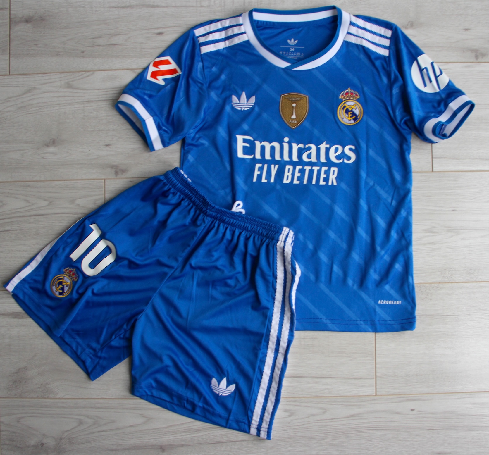 💡 **CIEKAWOSTKA:** Zestaw inspirowany trzecim kompletem Realu Madryt 2024/25 został zaprojektowany w duchu retro – nawiązuje do klasycznych wzorów z lat 80., a złota plakietka **Intercontinental Champions 2024** upamiętnia triumf Królewskich w światowych rozgrywkach klubowych.