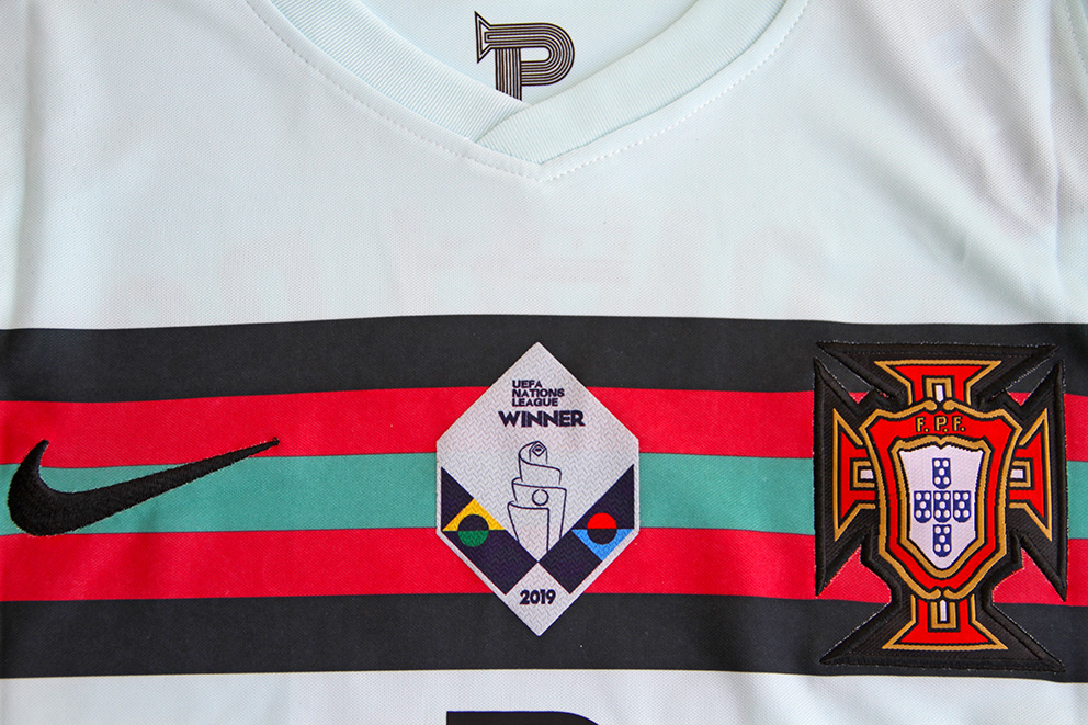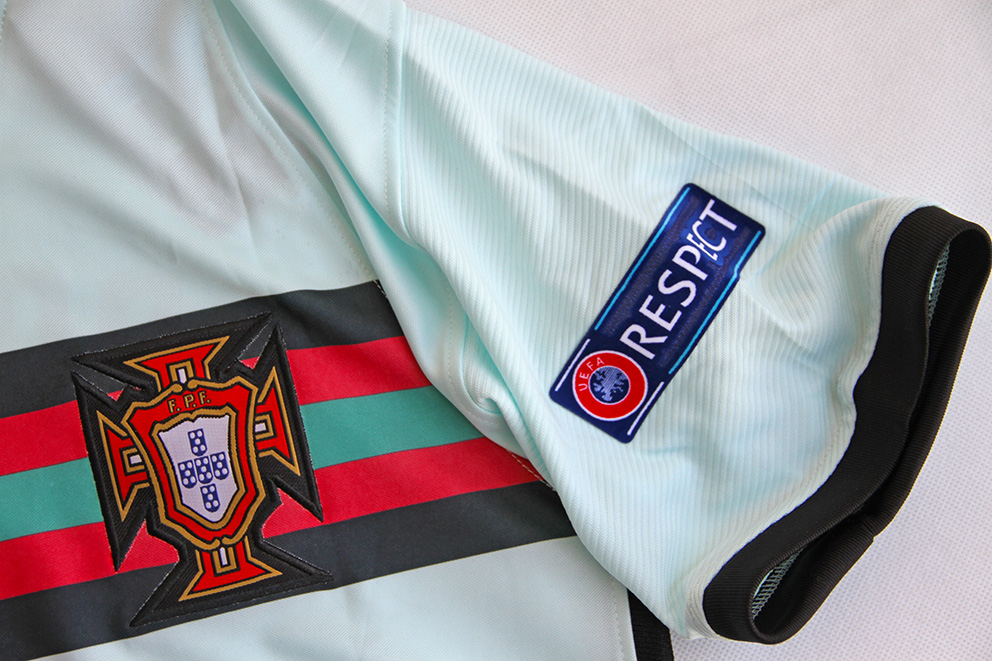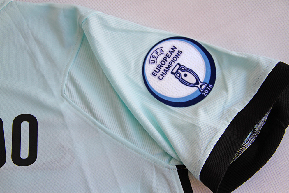 Na prawym rękawie plakietka informująca o wygraniu EURO 2016