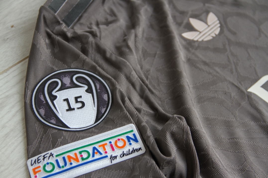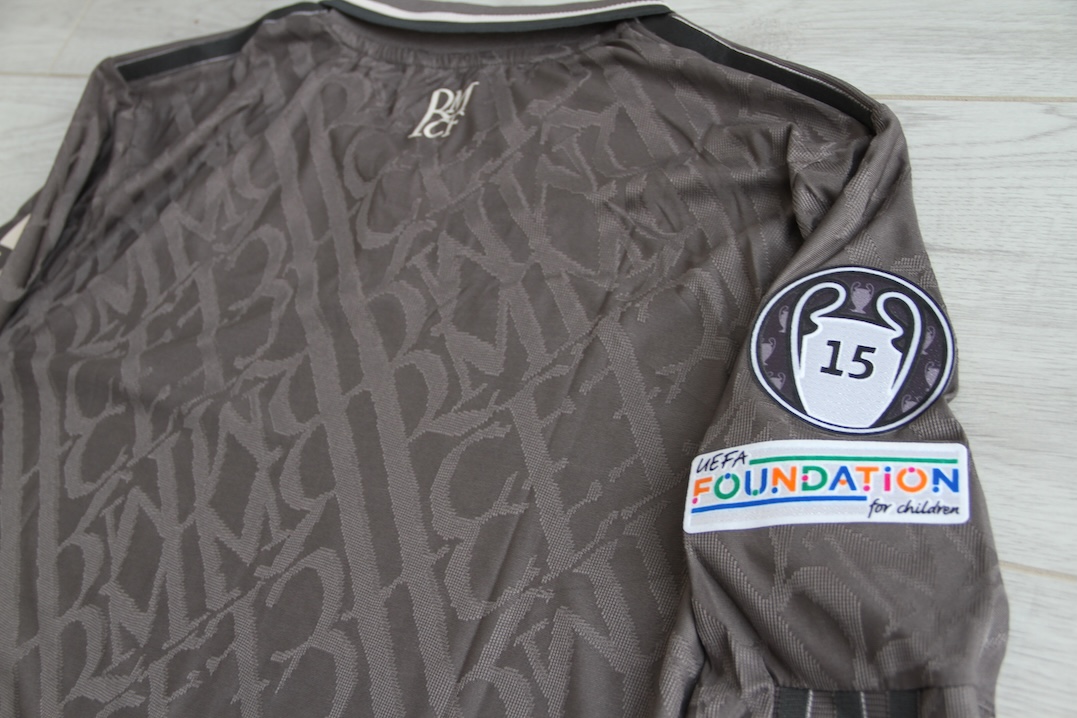 Możliwość wyboru dowolnego nadruku w oryginalnej czcionce, czyli numeru i nazwiska, np. Mbappe, nr.9 (inna w pucharach, inna w lidze hiszpańskiej)